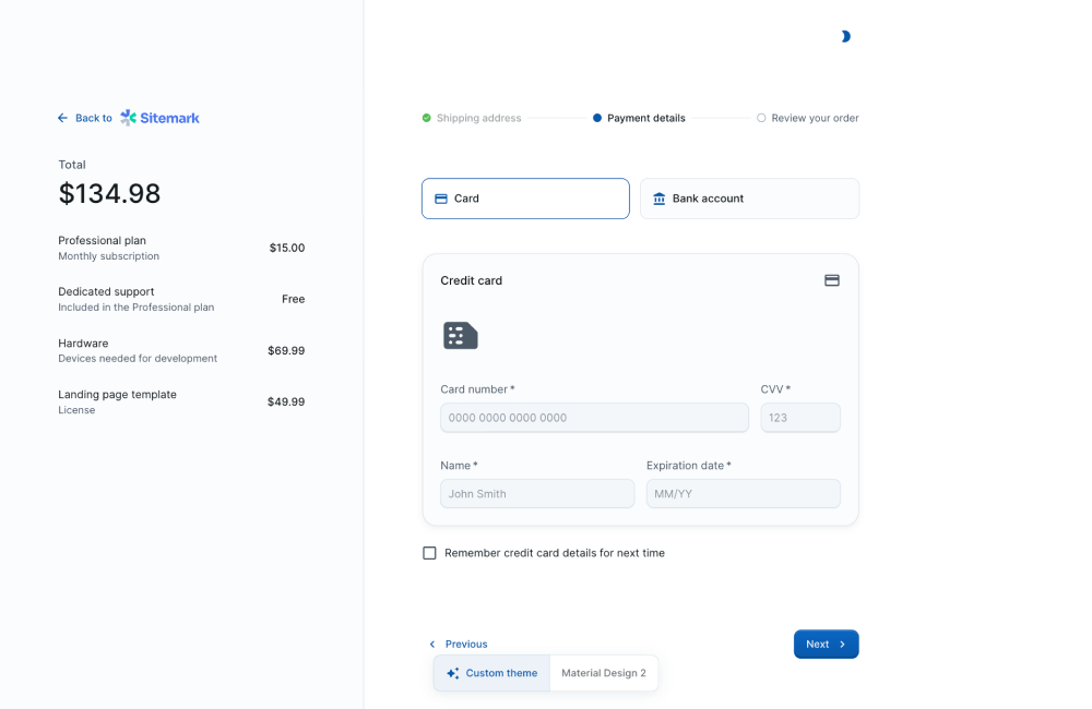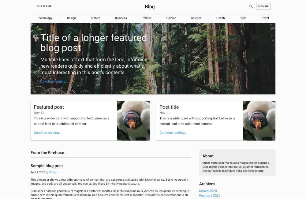 Our curated collection of free Material UI templates includes dashboards, landing pages, sign-in and sign-up pages, a blog, a checkout flow, and more. They can be combined with one of the example projects to form a complete starter.